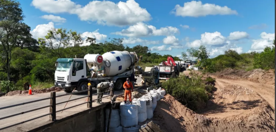El objetivo es reforzar los estribos y terraplenes de la estructura con big bags de suelo-cemento. Por su parte, informaron que ya se terminó de hormigonar el cimiento del estribo del puente que presentaba complicaciones.